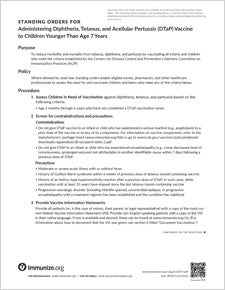Standing orders for administering Td/Tdap to children ages 7 years and older