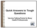 professionals present the science about vaccine safety and