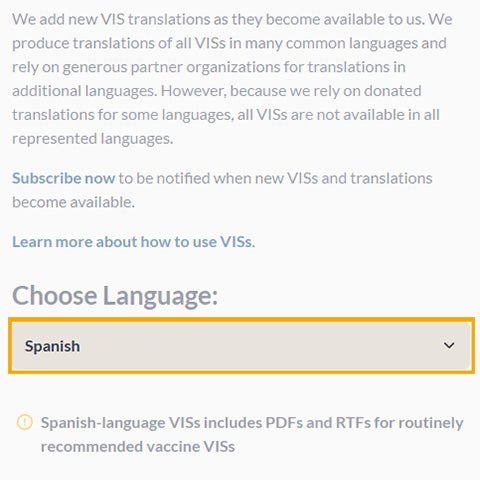 Federal law requires that VISs be handed out before each dose of certain vaccinations. The VISs available here are the same versions you would receive if you downloaded them directly from CDC.