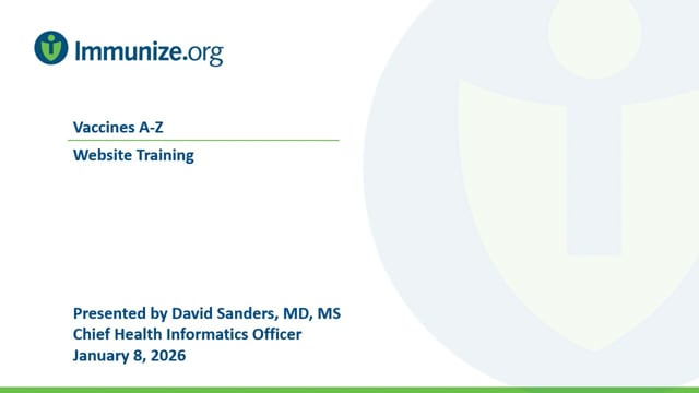 This session explores the content found within the Vaccines A-Z website section. This section is organized by vaccine/disease and includes links to vaccine-specific material found under Clinical Resources, Ask the Experts, Official Guidance (recommendations, package inserts, state policies), Travel, Unprotected People Stories, and Photos and Videos.
