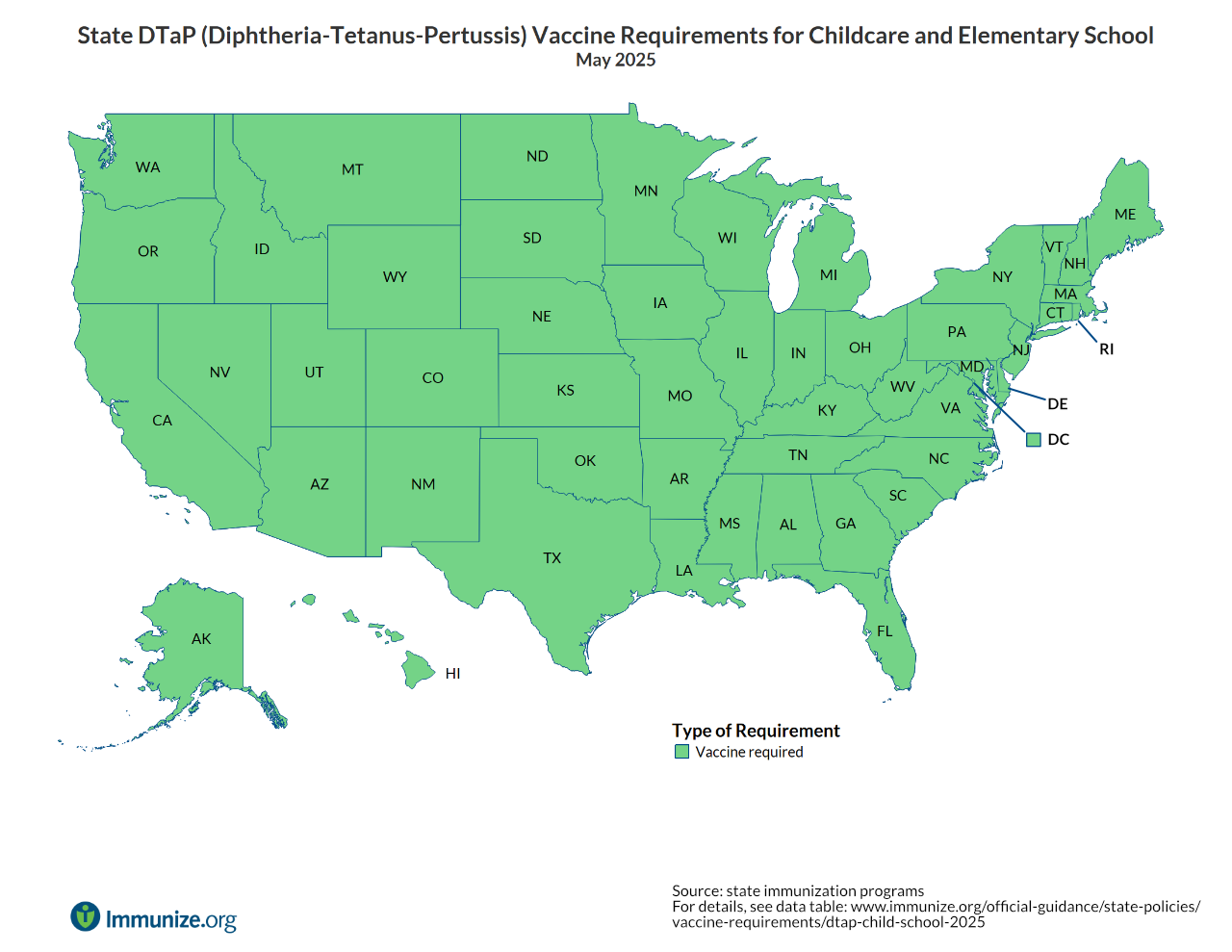 This table was compiled by Immunize.org using information provided by state health departments. If you have updated information concerning this table, please call (651) 647-9009 or email admin@immunize.org.