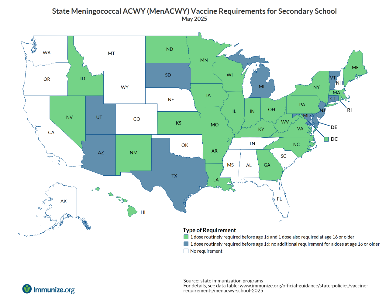 | Meningococcal ACWY (MenACWY) Vaccine Requirements for Secondary School as of May 2025 |